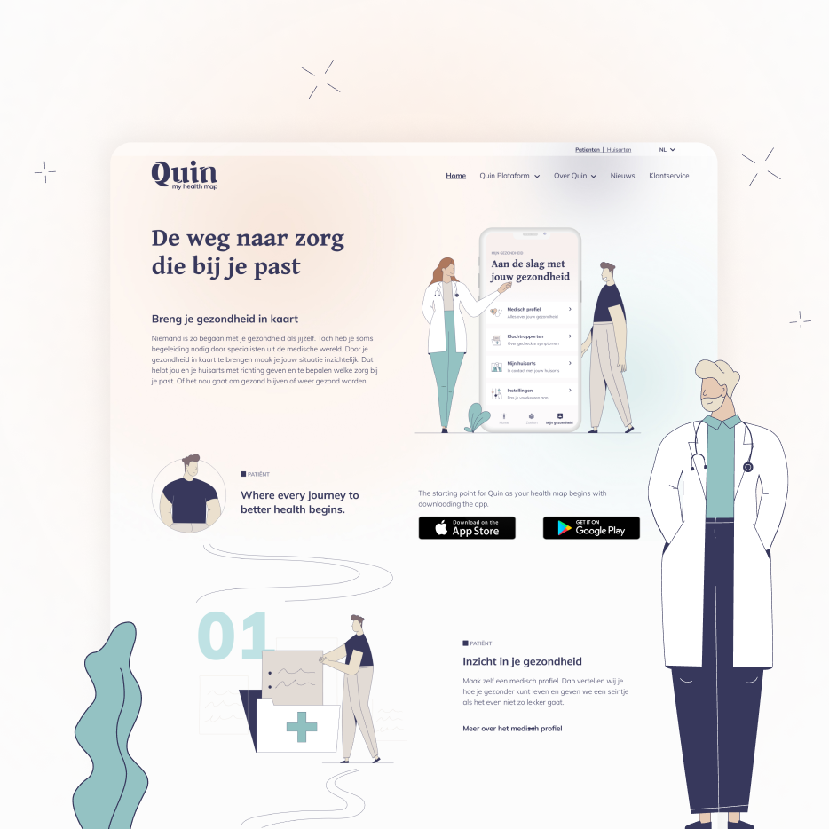 Every so often we meet a client at the very beginning of their journey. Quin arrived with a clear, ambitious aim: improve healthcare in the Netherlands and help people build a better relationship with their own health. Joining at start‑up stage meant shaping both the product and the brand, side by side.